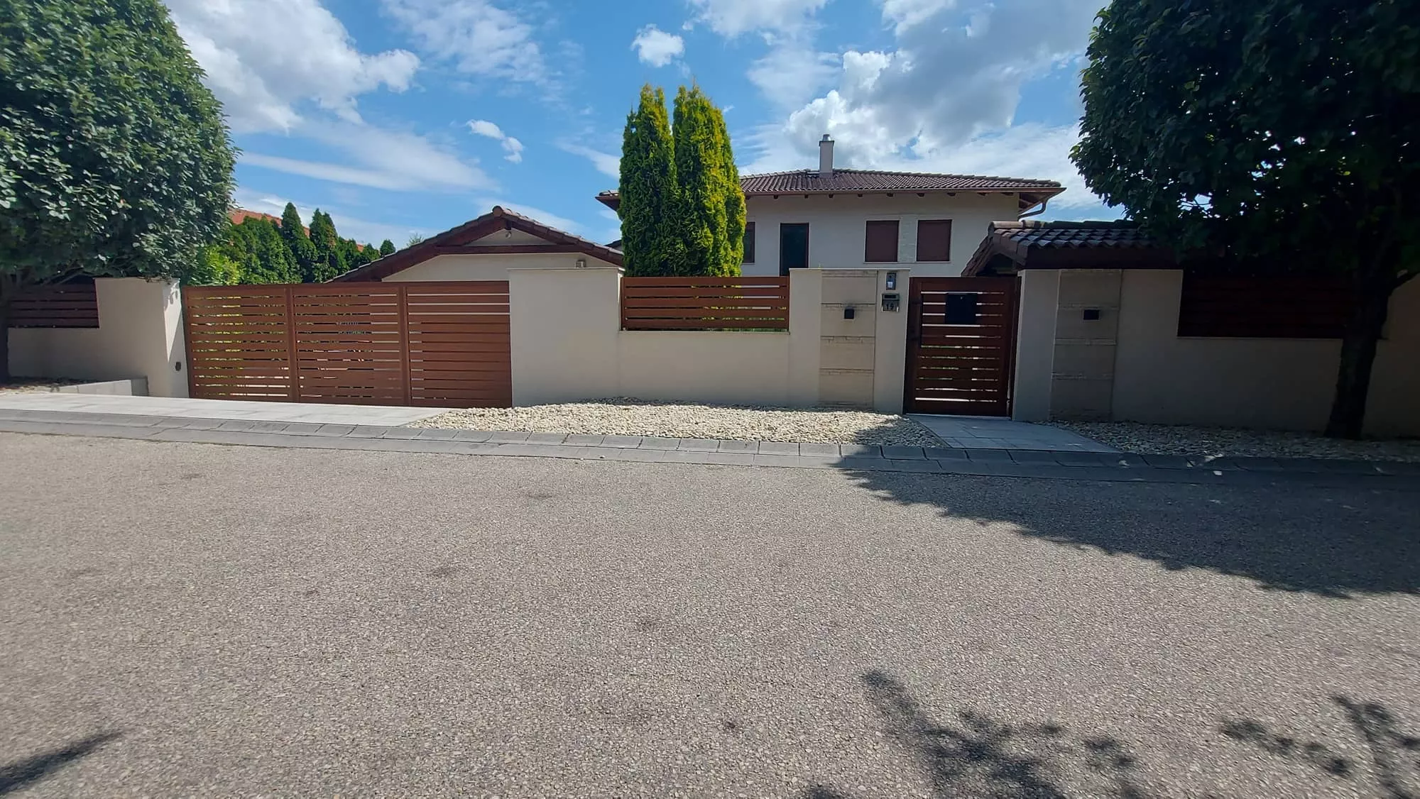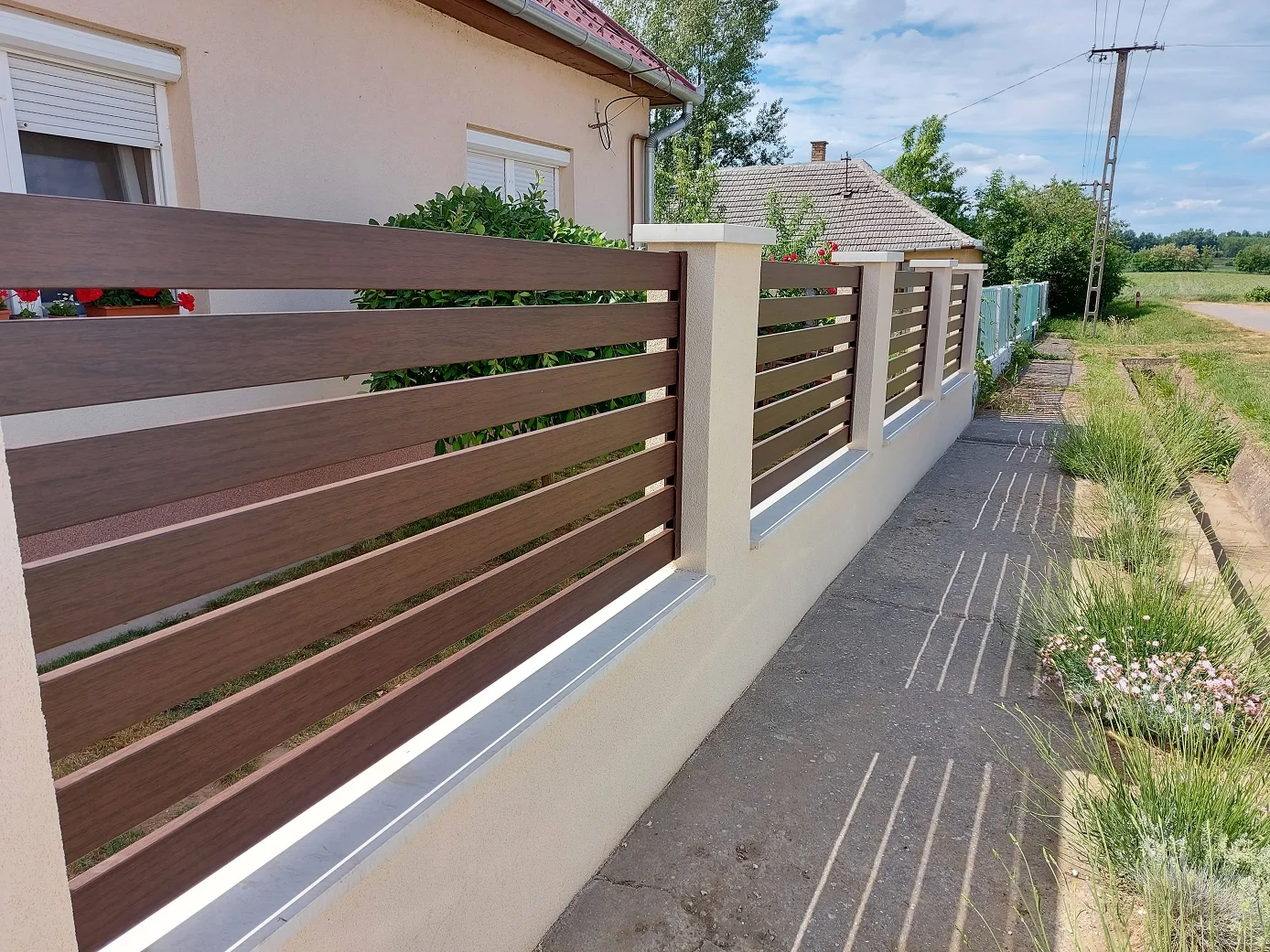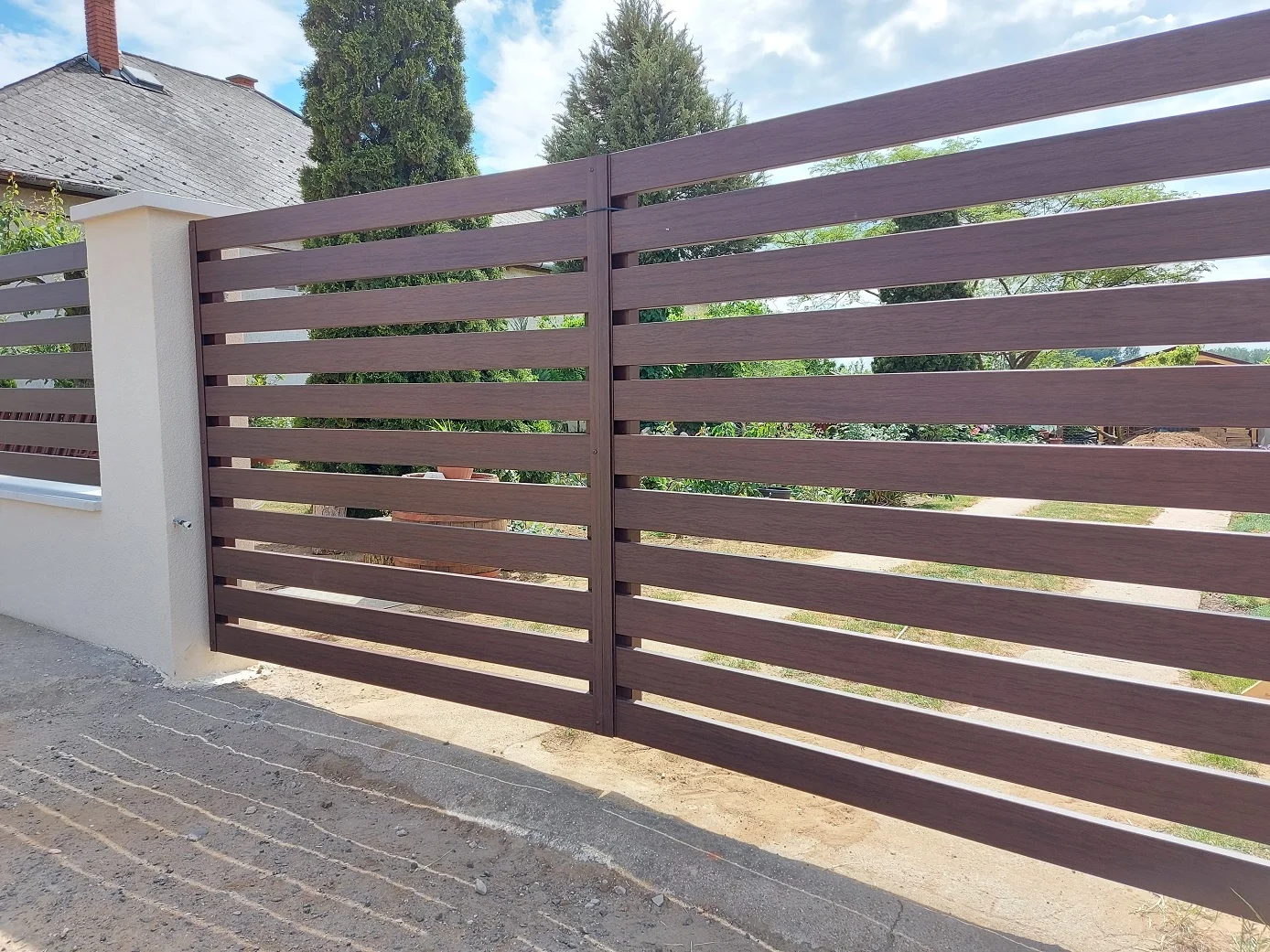 Az alumínium kerítéslécek zártszelvények, így a kerítés megjelenése az utcáról és az udvarról nézve is ugyan olyan esztétikus.
