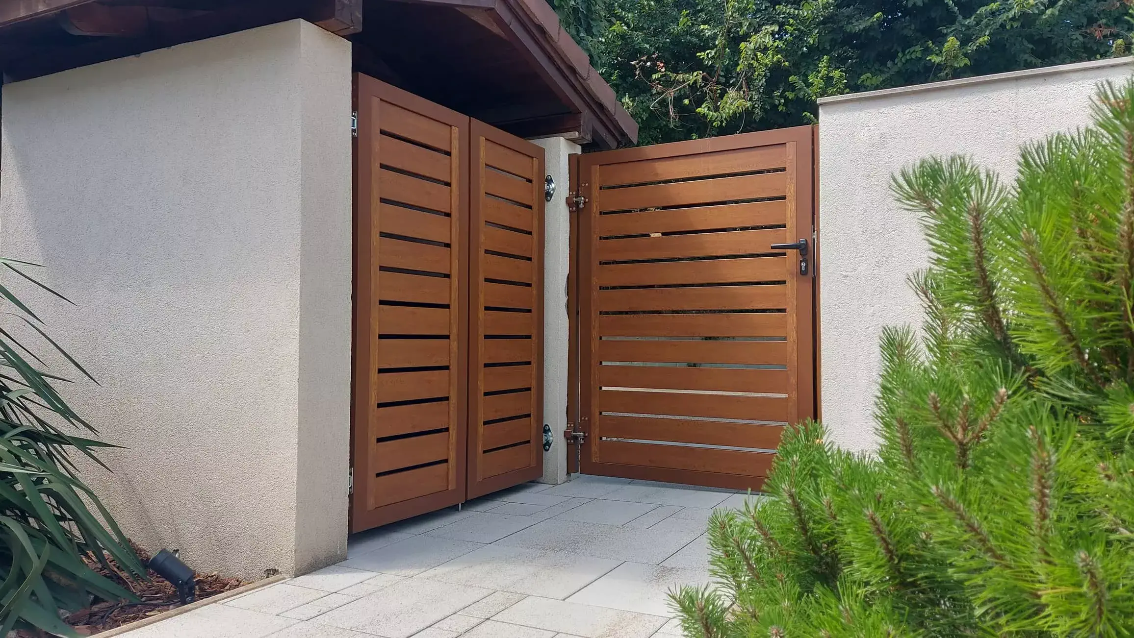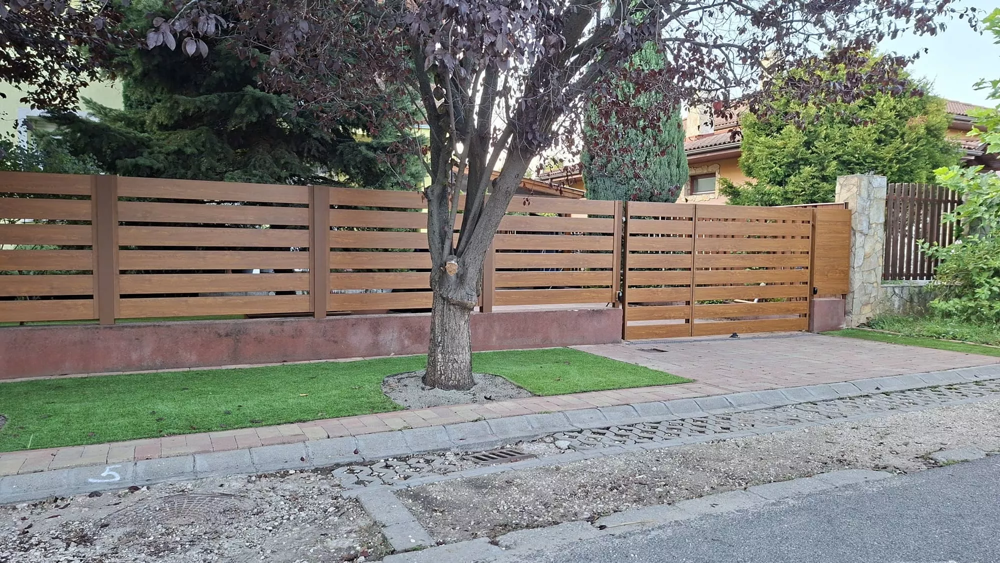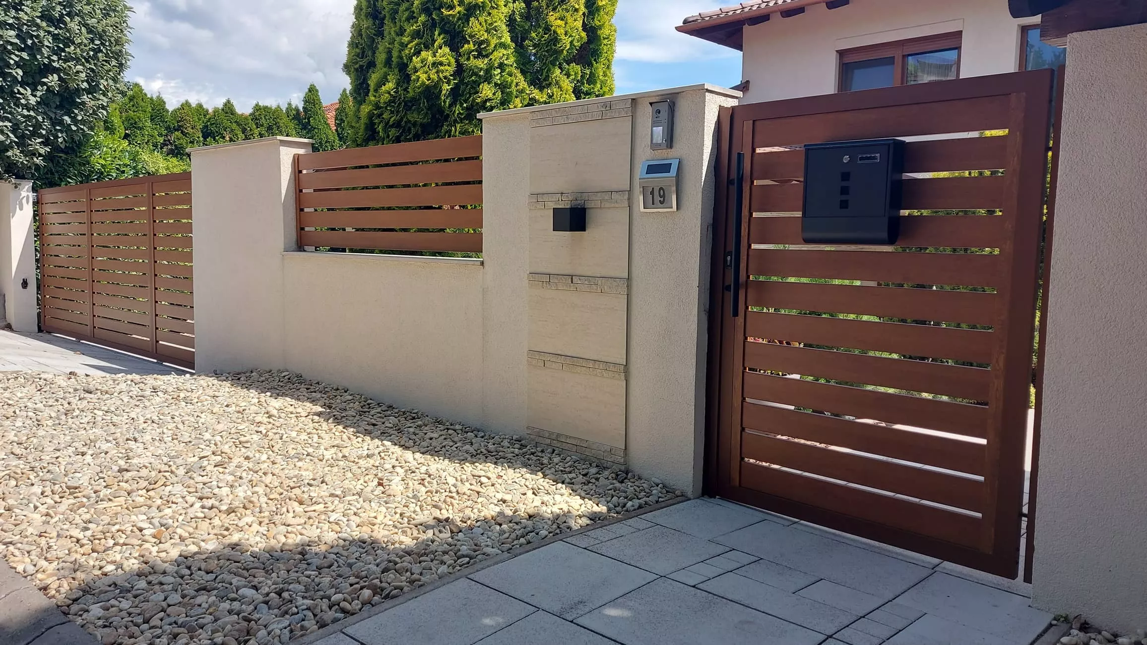 Az alumínium kerítéslécek zártszelvények, így a kerítés megjelenése az utcáról és az udvarról nézve is ugyan olyan esztétikus.
